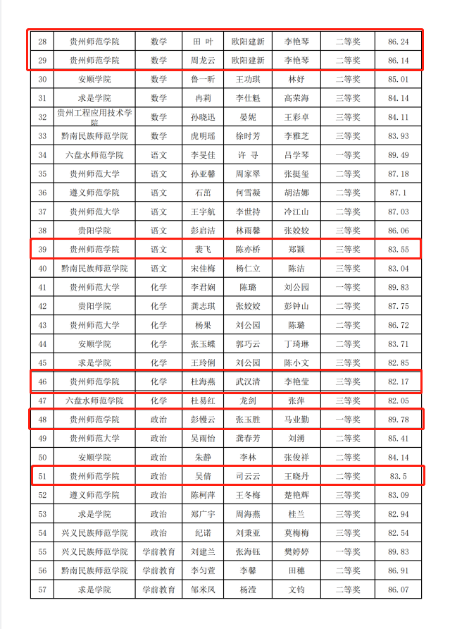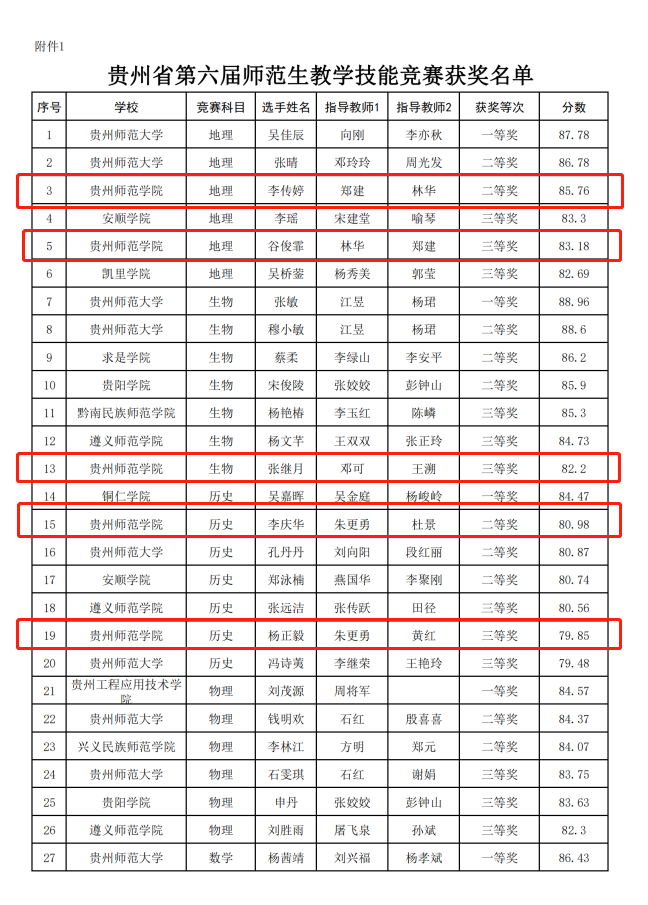 7月14-15日,由贵州省教育厅主办、贵州师范大学承办的贵州省第六届师范生教学技能竞赛在贵州师范大学花溪校区举行。bat365官网学子不负众望,最终获得一等奖2项,二等奖6项,三等奖8,一、二等奖和获奖总数均位列全省所有参赛院校第二