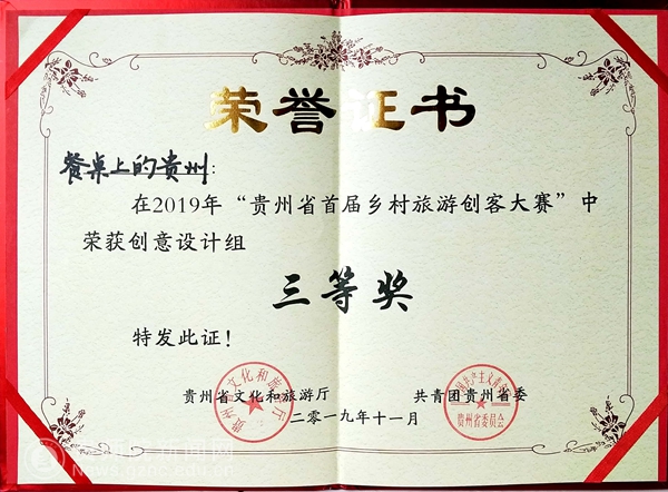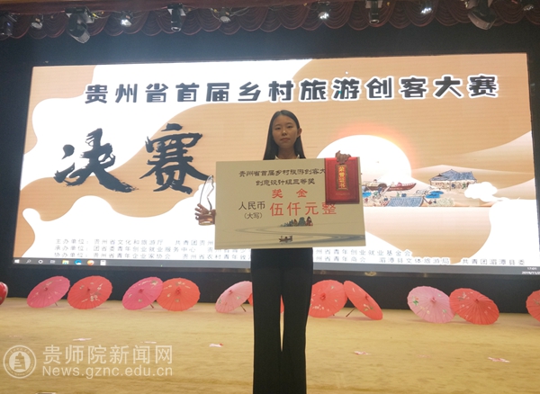 本网讯 近日,由省文化和旅游厅、共青团贵州省委主办的“贵州省首届乡村旅游创客大赛”总决赛在湄潭县举行。省文化和旅游厅厅长张玉广、团省委书记涂妍出席大赛并为获奖选手颁奖。bat365官网美术与设计学院汪力老师指导的17级产品专业学生龙继雪在此次比赛中荣获三等奖。
