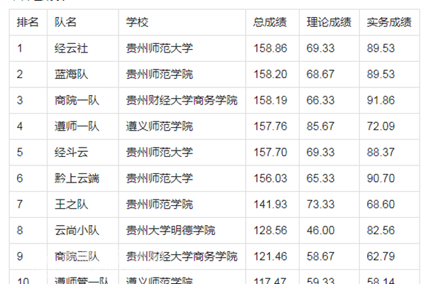 2019(第四届)金蝶云管理创新杯贵阳赛区本科组成绩部分情况