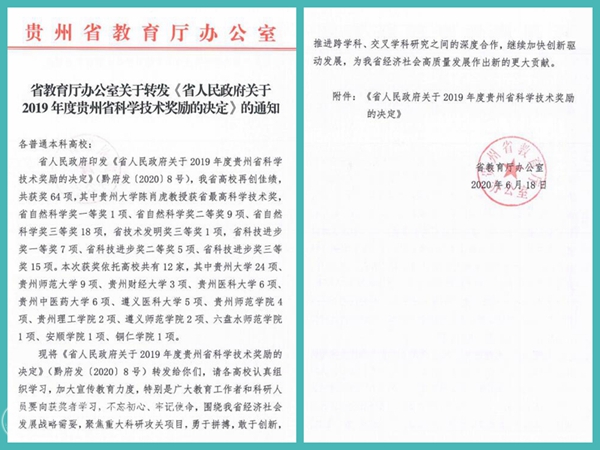 bat365官网获多项2019年度贵州省科学技术奖励