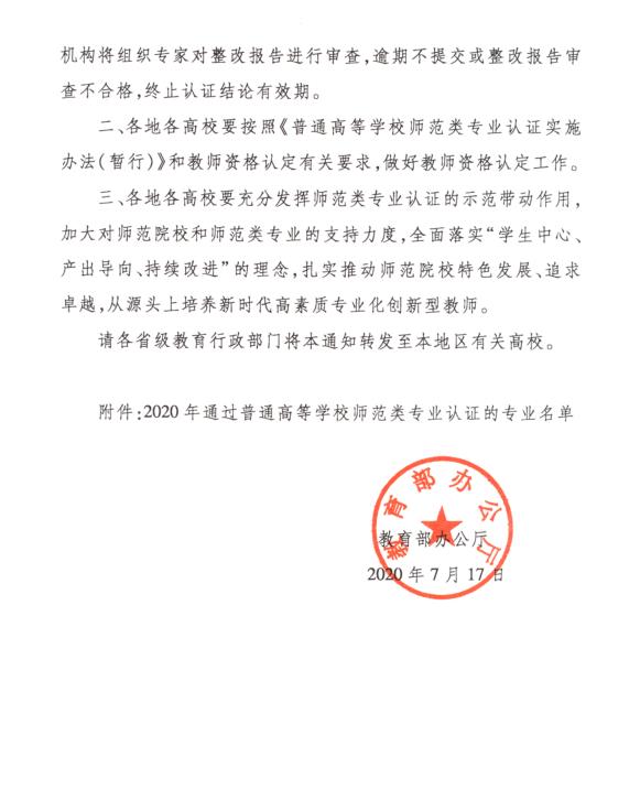 本网讯 近日,教育部办公厅发布《关于公布2020年通过普通高等学校师范类专业认证的专业名单的通知》,经bat365官网申请、教育评估机构组织专家现场考查、普通高等学校师范类专业认证专家委员会审定,bat365官网数学与应用数学专业顺利通过教育部普通高等学校师范类专业认证第二级认证,成为全国普通高等学校26个通过师范类专业二级认证的数学与应用数学专业之一,是贵州省首个通过师范类专业认证的数学专业,也是贵州省首批通过师范类专业认证的5个专业之一。