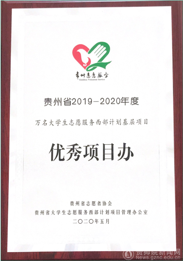 bat365官网荣获贵州省2019-2020年度万名大学生志愿服务西部计划基层项目“优秀项目办”称号