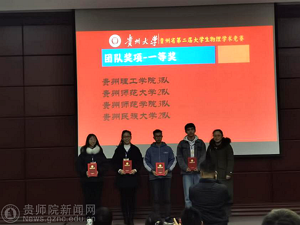 本网讯 11月28日,周筑文院长、陈德良副院长带队去贵州大学参加了由贵州省教育厅主办、贵州大学承办、贵州省物理学会协办的贵州省第二届大学生物理学术竞赛决赛。本次比赛为期两天,物理与电子科学学院共两支队伍入围决赛。赛前通过抽签方式确定角色,在比赛进行时各参赛队伍按照规则从可选题中抽取一题,依次进行反方向正方挑战题目、正方进行题目报告、反方提问、评论方报告等环节。选手之间密切配合、队伍之间唇枪舌战,展现出选手们扎实的数理知识和敏锐的探究能力。