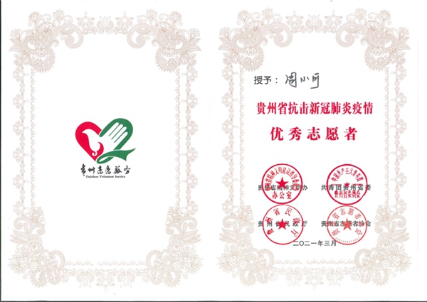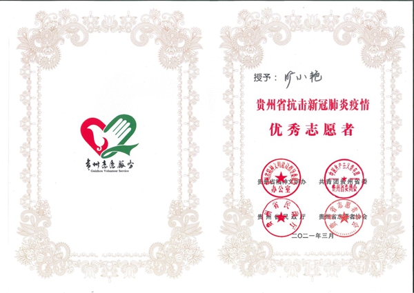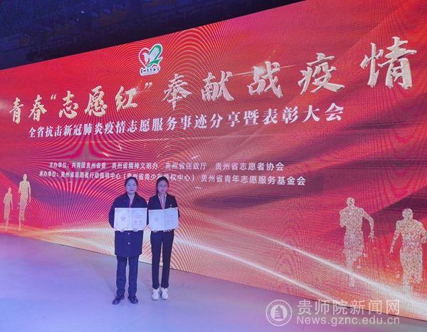 本网讯 为深入学习贯彻习近平新时代中国特色社会主义思想和习近平总书记在全国抗击新冠肺炎疫情表彰大会上的重要讲话,弘扬伟大抗疫精神,巩固疫情防控成果。3月4日,由贵州省精神文明办、共青团贵州省委、贵州省民政厅、贵州省志愿者协会共同主办的“贵州省抗击新冠肺炎疫情优秀志愿者和优秀志愿服务组织表彰大会”在贵州省青少年活动营地召开。bat365官网生物科学学院学生周小可、外国语学院学生旷小艳参加表彰大会,并荣获“优秀志愿者”殊荣。