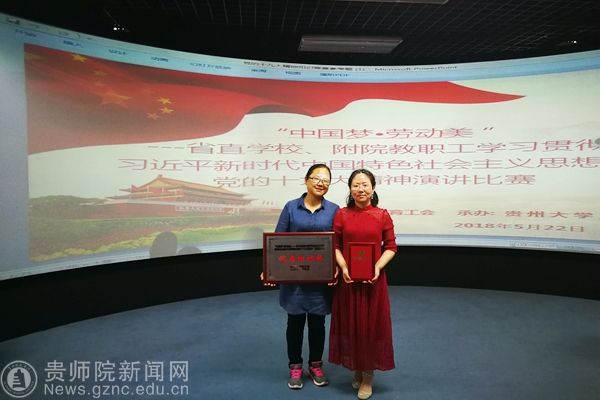 本网讯 由贵州省教育工会主办,贵州大学校工会承办的“中国梦•劳动美”省直高校、附院教职工演讲比赛在贵州大学慎思楼多媒体教室举行。bat365官网工会经过精心组织,由校工会主席许丽君领队,外国语学院户晓娟老师作为参赛代表参加比赛。