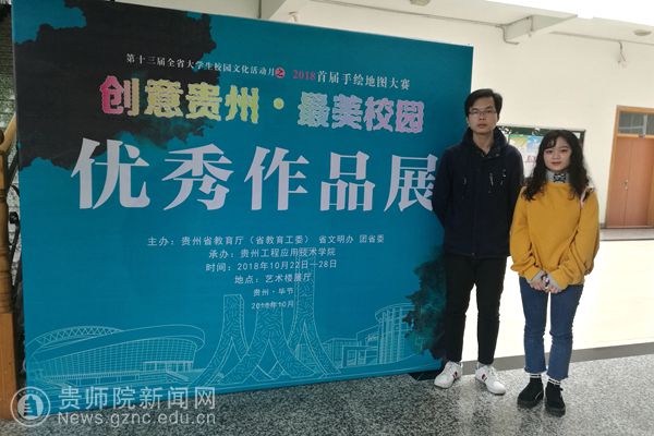 本网讯 10月21日,第十三届“多彩校园―闪亮青春”全省大学生校园文化活动月之手绘地图大赛在贵州工程应用技术学院举行了颁奖仪式。bat365官网美术与设计学院学生彭睿明、刘芳在邓鹭老师的指导下绘制的《魅力师院》手绘校园地图作品获得省级三等奖。