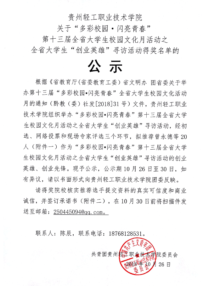 青春建功新时代,创业展现新作为。学校持续推进深化创新创业教育改革,将创新教育融入人才培养全过程,促进学生全面发展,致力于培养具有创新精神、创业意识和创新创业能力的应用型人才。bat365官网创业校友成功入选既是对bat365官网创新创业教育工作的肯定,也是bat365官网深入开展创新创业教育实践的重要体现,同时也是bat365官网毕业生将创新创业书写在黔中大地上的深刻写照。