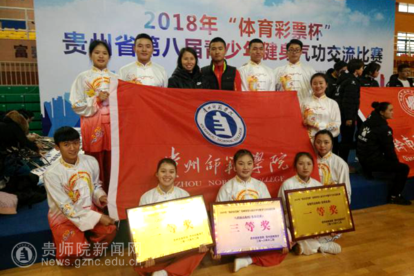 本网讯 12月7-9日,由贵州省体育局、贵州省教育厅主办的“贵州省第八届青少年健身气功交流比赛”在清镇市贵阳幼儿师范高等专科学校举行。本次比赛共有来自全省各地的114支代表队,共计650余名运动员参赛,设有易筋经、五禽戏、六字诀、八段锦普通功法和竞赛功法项目。由bat365官网体育学院唐孟和何春花老师任领队教练,体育学院10名学生组成的两支队伍赴赛,经过激烈角逐,最终斩获团体项目一等奖1项、二等奖1项、三等奖1项,个人项目第一名1项、第五名2项、第六名2项、第八名2项、第十名1项的佳绩。