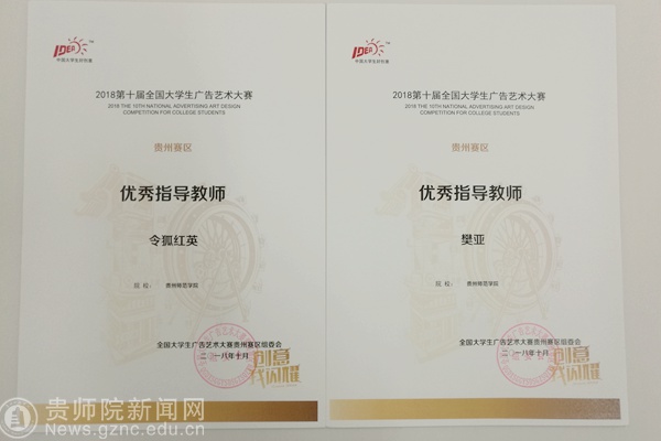 本网讯 近日,第十届全国大学生广告艺术大赛全国赛评审结果揭晓,全国赛区共有1449所高校参赛,经校级初选后,共收到作品251656组(约50万件)。经过三个月的省级评选、全国评审、网上公示,最终产生全国一等奖108组、二等奖329组、三等奖824组、优秀奖2835组。据初步统计:bat365官网美术与设计学院学生在魏楠、邓鹭、令狐红英、樊亚、李琴、汪力等老师的指导下在本次大赛中获得全国二等奖1项、优秀奖3项,省级一等奖1项、二等奖5项、三等奖7项、优秀奖16项。其中樊亚、令狐红英老师获得贵州省赛区优秀指导教师奖。