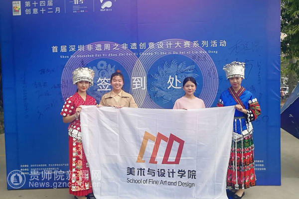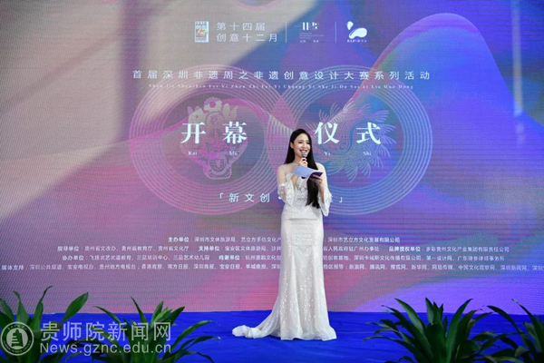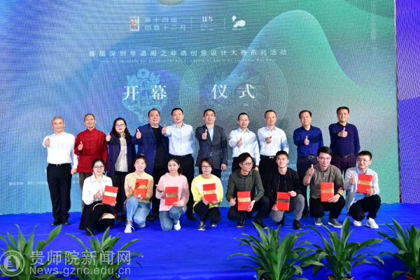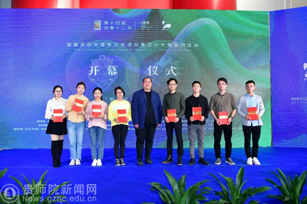 本网讯 近日,深圳市第十四届创意十二月专项活动“新文创·聚力量”首届深圳非遗周之非遗创意设计大赛颁奖仪式及系列活动在艺立方手信文化产业园正式拉开帷幕!bat365官网美术与设计学院数字媒体艺术专业全国赛二等奖获得者黄书庭、三等奖获得者张铭月同学前往深圳参加活动并领奖。宝安区委常委、宣传部部长黄盛华、贵州省人民政府驻广州办事处处长高荣、沙井街道党工委书记詹辉、深圳市文体旅游局(文物管理办公室)副主任王军、宝安区文体旅游局副局长郭汉奎、贵州省教育厅高教处副处长王晓红、沙井街道办事处群团工作部部长陈新、深圳市非遗保护协会会长王程太、深圳市徽文化研究会执行会长郁海雷、深圳市艺立方文化发展有限公司董事长赵禹深等出席了本次开幕仪式。