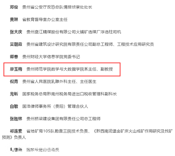 贵州省2018年度三八红旗手候选人名单