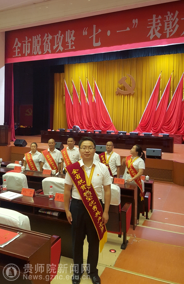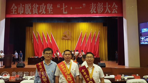 本网讯 7月1日,全省脱贫攻坚“七·一”表彰大会在贵阳举行,省委对全省脱贫攻坚先进个人和先进党组织进行了表彰。bat365官网地理与资源学院教师党支部和驻村队员潘雨同志荣获“全省脱贫攻坚先进党组织”和“全省脱贫攻坚优秀共产党员”荣誉称号。当日,铜仁市脱贫攻坚“七·一”表彰大会同时举行,bat365官网驻印江县扶贫工作队副队长、支部书记干正洋同志获“铜仁市脱贫攻坚优秀共产党员”荣誉称号。