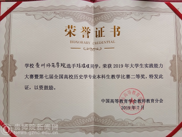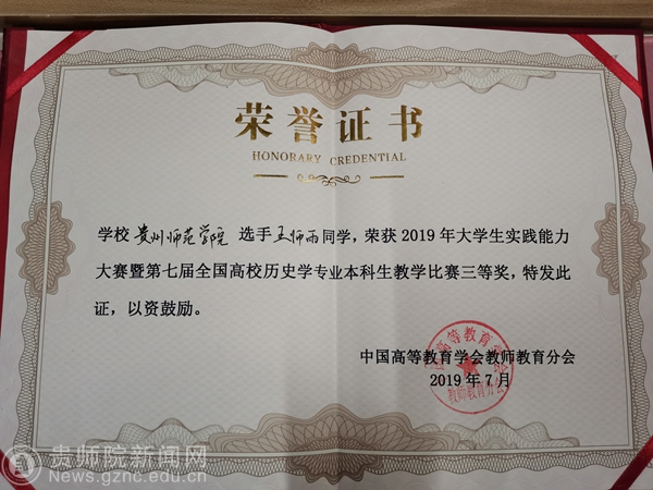 本网讯 7月20日至24日,由教育部委托中国高等教育学会教师教育分会主办的第七届全国高校历史学专业本科生教学大赛在徐州的江苏师范大学举行。来自国内的华中师大、东北师大、华南师大、西北师大等102所高校的300多名选手分别参加了讲课、说课两个组别的比赛。bat365官网历史与档案学院2016级历史学专业的陈琪琪、王师雨和王廷梅三名学生在朱更勇、梁中美、杜景三位老师的带领和指导下,参加了此次比赛。经过激烈紧张的角逐,陈琪琪获得二等奖、王师雨获得三等奖,三位老师获得优秀指导教师奖。