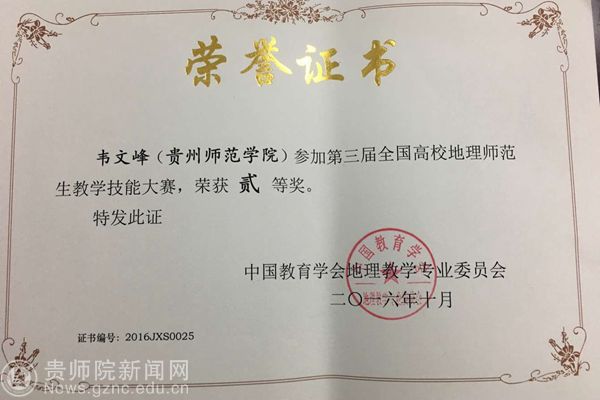 韦文峰获第三界全国教学技能大赛二等奖