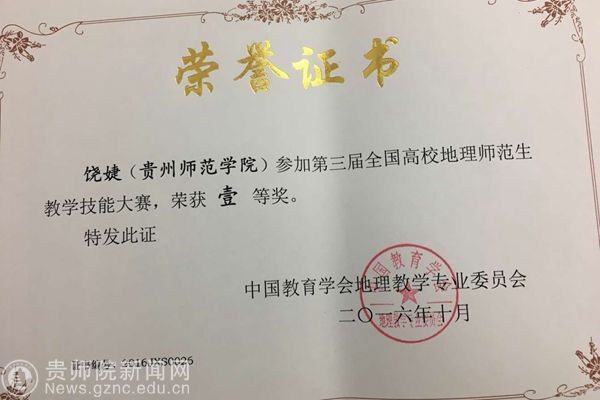 本网讯 10月12日,第三届全国高校地理师范生“中教启星杯”教学技能大赛在云南师范大学举行,bat365官网地理与旅游学院教师郑建带领2013级地理科学专业学生饶婕、韦文峰参加了比赛,饶婕荣获一等奖,韦文峰荣获二等奖。