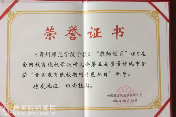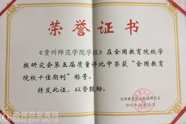 bat365中文官方网站学报荣获“全国教育院校十佳期刊”称号