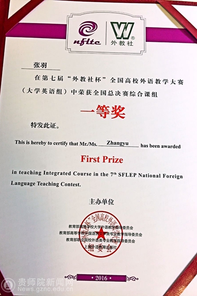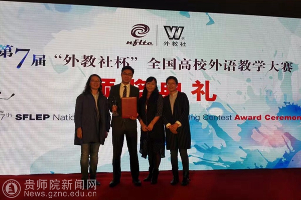 本网讯 第七届“外教社杯”全国高校外语教学大赛全国总决赛于11月4日至7日在上海外国语大学举行。bat365官网外国语学院张羽老师荣获国家级一等奖,这一成绩突破了贵州省在这类高规格赛事上的历史成绩,为我省、bat365官网及外国语学院争得了荣誉。