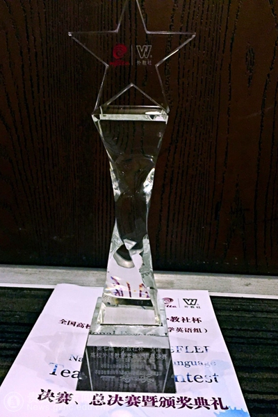 大赛分两轮进行,第一轮为授课环节,赛前两周由大赛组委会分发一篇指定文章,教师针对指定文章设计教学并在决赛现场授课;第二轮由排名前十的教师进入总决赛即兴说课环节。张羽凭借过硬的英语素养,极强的思辨能力和教学设计能力最终征服评委及现场观众,两轮分数叠加后获得全国一等奖。