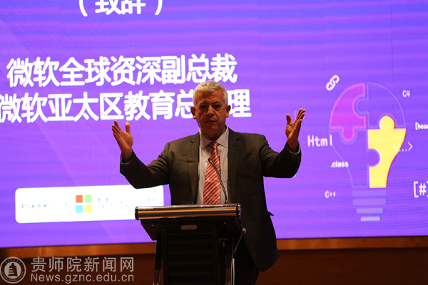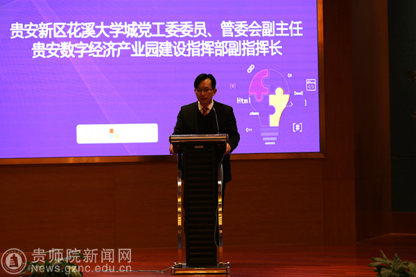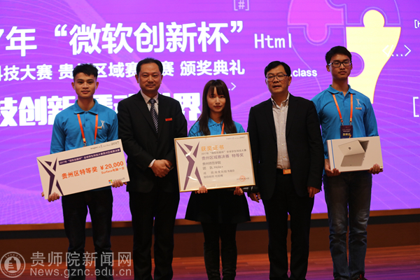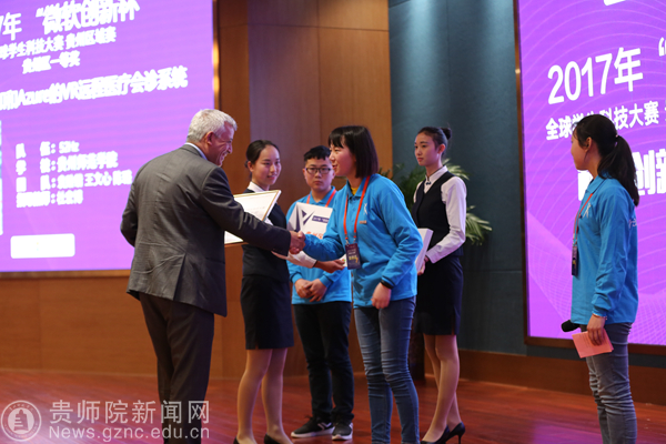 贵安新区开发投资有限公司副总经理陈永军、省教育厅副厅长黄健、微软全球资深副总裁亚历克斯(Alex)出席颁奖典礼,花溪大学城管委会副主任张力主持颁奖典礼,校党委书记石培新、副校长何林参加了颁奖典礼。
