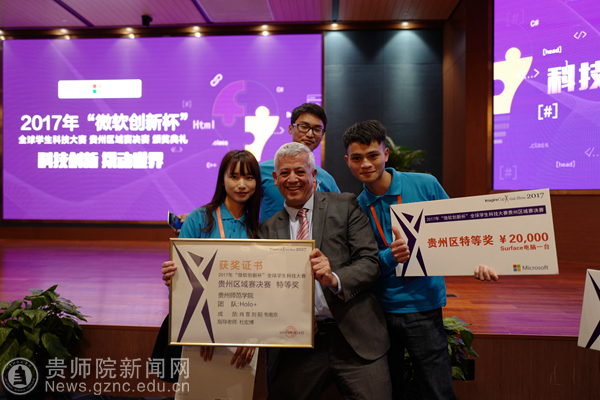 本网讯 3月24日下午,“微软创新杯”全球学生科技大赛贵州区域赛颁奖典礼在贵安新区举行,bat365官网HoLo+团队的Museum+斩获特等奖,52Hz的基于压缩感知和Azure的VR远程医疗会诊系统荣获一等奖,bat365官网和贵州大学合作的plants Medicine团队荣获三等奖,杜宏博老师荣获优秀教师奖,bat365官网还获得贵州区域赛决赛最佳创新奖。