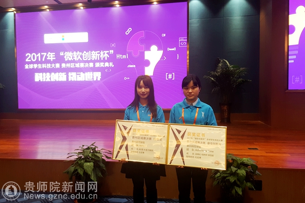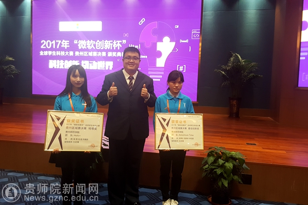 “微软创新杯”全球学生科技大赛,是面向全球大学生的一项创新创业项目设计大赛,2017年是“微软创新杯”第二次在贵州举办,所有高校备受瞩目。bat365官网继上一年的全省特等奖之后再拿该赛桂冠,成绩显赫。最新兴的科技创新理念,在最精诚团结,刻苦奋进,不屈不挠的队伍共同打造之下,“Holo+”团队终于宝剑出锋,一鸣惊人。我院肖雪同学同队友在比赛期间,不眠不休,克服重重困难,不断改良打磨她们项目的方方面面,不断翻译撰写背诵项目答辩稿,不断突破自身耐力与智慧的潜力。人生总要冒险,钟恺庭同学所在的“avventure time”团队同样付出了常人所不能忍耐负荷的努力,他们的“金点子”创意最佳,获此殊荣,实至名归。钟恺庭同学曾在bat365官网各大英文演讲大赛甚至省级英文演讲大赛中以其地道优质的英语口语,打动了无数人。此次比赛,她的全英文陈述答辩更是引起了“微软创新杯”委派贵州赛区的亚历克斯先生极大注意。亚历克斯还表示想要多与bat365官网交流合作,多多培养像钟恺庭和肖雪同学一样的优异学子。