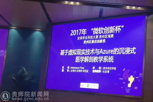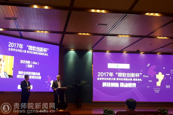 本网讯 近日,2017年“微软创新杯”全球学生科技大赛贵州区域赛决赛颁奖典礼在贵安新区大学城举行,外国语学院团委书记罗荣、辅导员冯康组织了五十名同学,前往参加观摩了颁奖典礼。