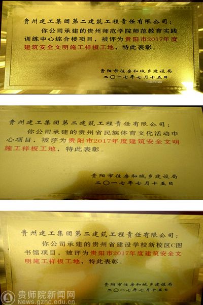 师范教育实践训练中心综合楼项目荣获 “贵阳市2017年度建筑安全文明施工样板工地”称号