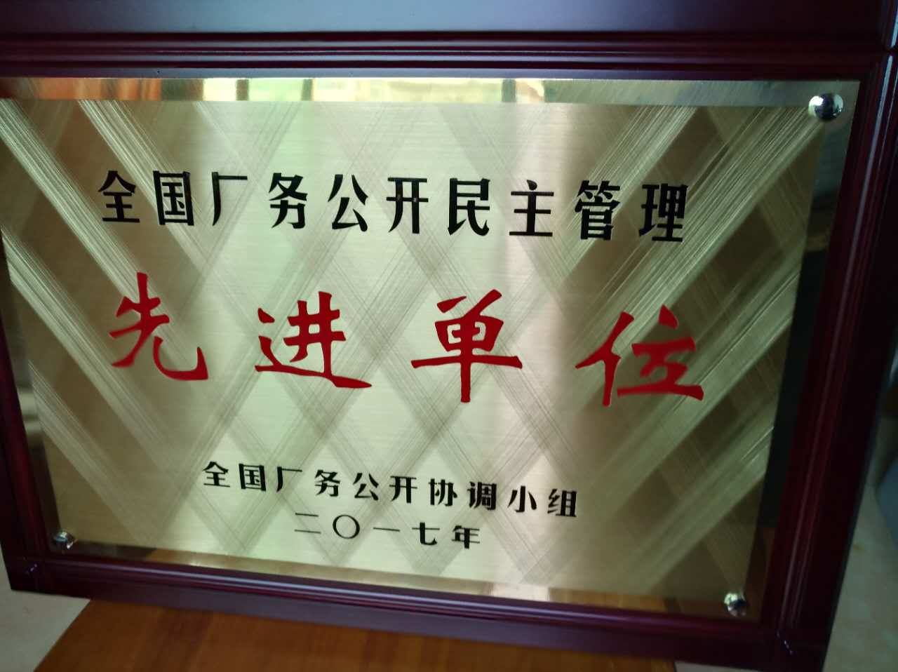 2017年9月,bat365官网喜获“全国厂务公开民主管理先进单位”。此次评选从2017年5月开始,由全国厂务公开协调小组开展“评选表彰全国厂务公开民主管理工作先进单位”。评选标准如下:在企事业单位中,评选表彰全国厂务公开民主管理先进单位400个;在历次表彰的全国厂务公开民主管理先进单位中,评选命名全国厂务公开民主管理示范单位100个;在省级以下各级厂务公开协调领导机构及其成员单位中,评选表彰全国推动厂务公开民主管理工作先进单位100个。