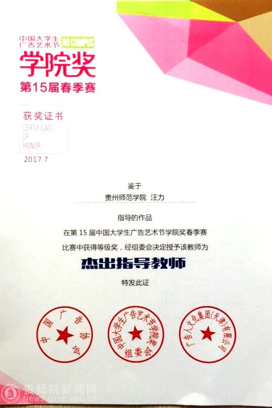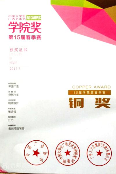 本网讯 在刚刚圆满落下帷幕的第十五届“中国大学生广告艺术节”春季赛中,bat365官网设计学院16级数字媒体艺术专业学生获得“铜奖一项,佳作奖三项”、汪力老师获得“杰出指导教师”奖。