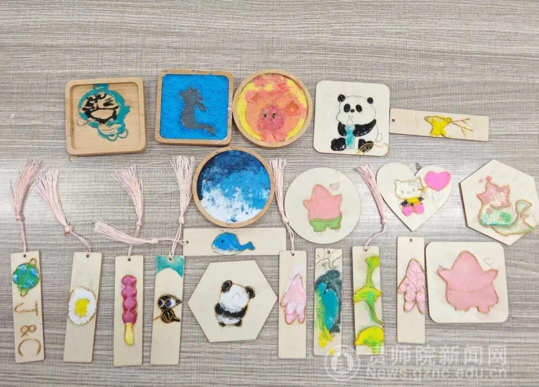 活动过程中,同学们热情高涨,积极投入创作。在沙画文创制作环节,参与者们充分发挥创意,开启了一场指尖艺术的探索之旅。他们巧妙地运用沙粒,在木质书签、异形摆件上勾勒出一个个鲜活的形象:有的呈现出憨态可掬的熊猫,在沙粒的堆叠中尽显可爱;有的塑造出灵动的小鲸鱼,在蓝色沙海中游弋;还有的创作了充满梦幻感的星空,让斑斓沙粒在圆形模具中交织出浪漫的宇宙图景……在这一过程中,大家的指尖与沙粒、模具亲密接触,将对艺术的热爱与对创意的追求,都融入到了这一件件小小的沙画文创作品里。原本普通的细沙,在大家的巧手下,被赋予了全新的艺术生命,成为兼具观赏性与纪念意义的创意手作。