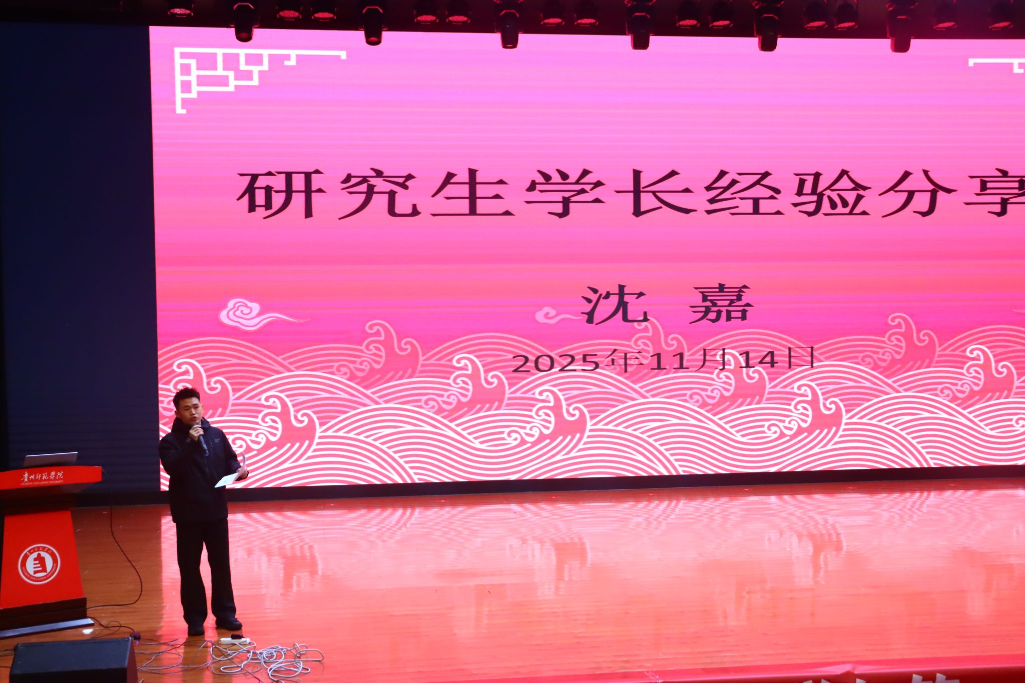 为促进毕业生充分高质量就业,2025年11月14日,体育学院在逸夫楼演播厅举办就业交流分享会,两位在读研究生沈嘉、梁鹏围绕“升学就业、教资备考”主题进行分享,全体学生参加。
