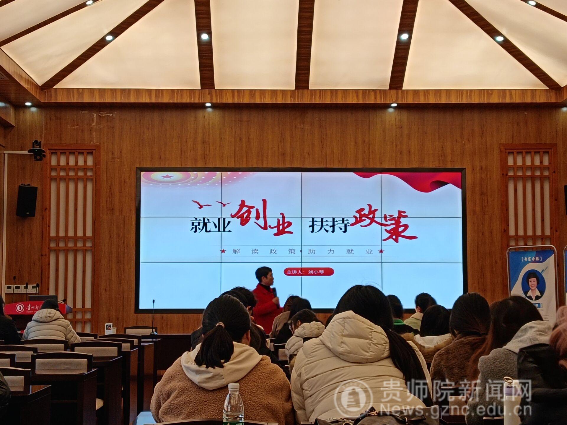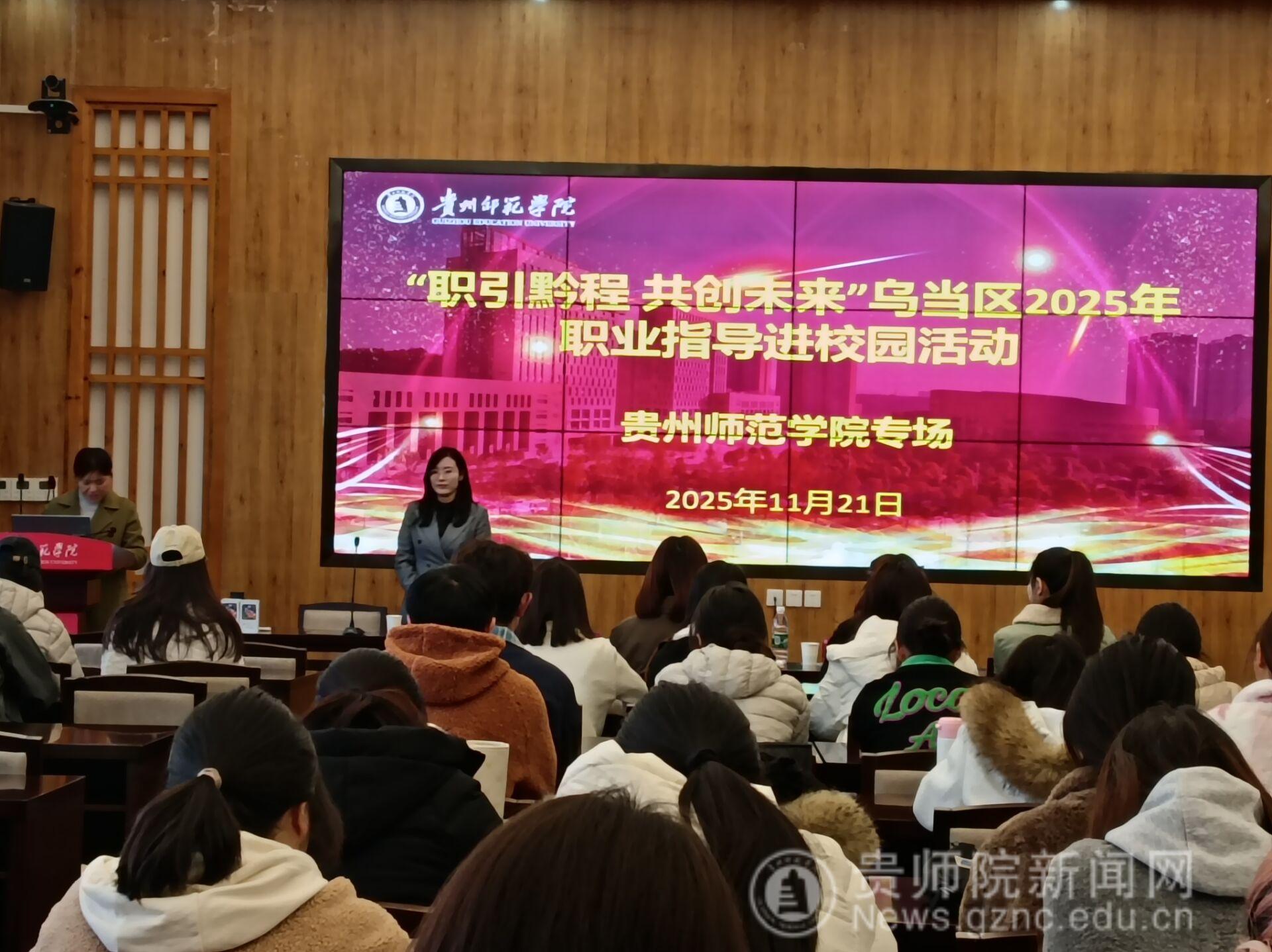 为帮助学生明晰就业形势、掌握求职技能、规划职业方向,2025年11月21日下午由乌当区人力资源和社会保障局与bat365中文官方网站教育科学学院联合策划的“职引黔程·共创未来”职业指导系列讲座,在学校印山书院顺利开展。活动特邀贵州省省级劳务品牌专家、省级创业指导专家刘小琴,企业管理咨询专家、资深人才测评官蒲天竹担任主讲,教育科学学院党委副书记傅小芳、辅导员李琴及22级应用心理学班、艺术教育专业120余名学生共同参加本次活动。