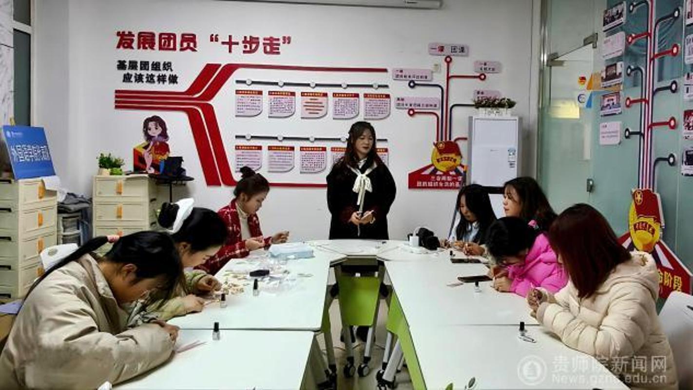本网讯 为落实学校第二届“一站式”学生社区文化节“文化浸润·自信笃行”素养提升活动的有关要求,涵养学生文化自信,推动中华优秀传统文化与时代精神深度融合,积极发挥学院心理辅导站育人协同作用。12月8日,外国语学院“指尖凝雅韵,疗愈心之境”非遗手工活动在小言之家举办,23、24级心理委员沉浸式体验螺钿技艺,收获文化熏陶与心灵疗愈的双重成长。