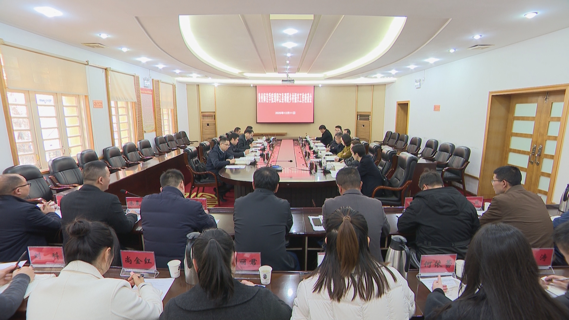 本网讯 2025年12月11日,校党委书记战勇、校长王蜀黔率队赴印江县开展乡村振兴调研,县委书记秦会刚参加调研。调研座谈会上,战勇听取了驻村队员工作情况汇报...