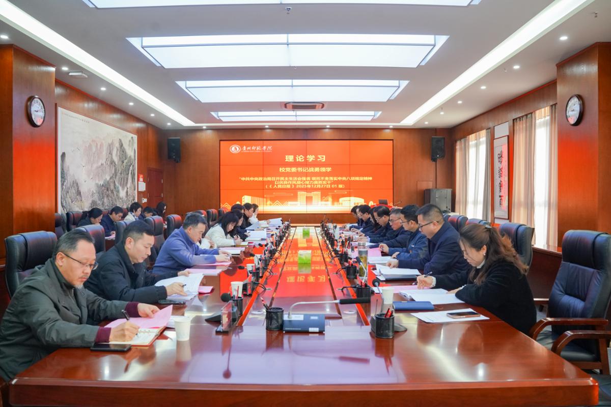 本网讯 1月8日,学校在信息楼二楼会议室召开2026年度第一次党委理论学习中心组学习暨2025年度校党委常委班子民主生活会会前专题学习研讨会。会议旨在持续深入...