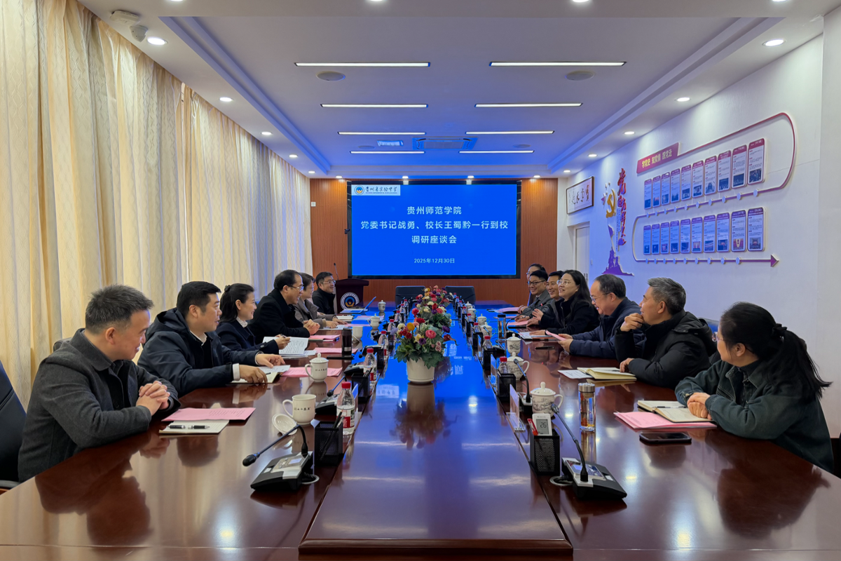 本网讯 12月30日上午,校党委书记战勇、校长王蜀黔、校党委副书记邹晓青一行到贵州省实验中学贵安校区调研座谈。贵州省实验中学党委书记高红娟、校长卢焱尧等...